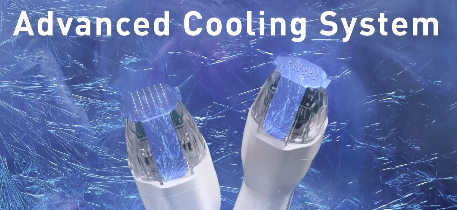 A hőenergia tökéletesen egyenletes eloszlatása, miközben hűtött kezelőfejekkel történik a kezelés, minimális hőkárosodást és fájdalmat generál. A hűtésnek köszönhetően a Virtue RF nagyobbb hatékonysággal, nagyobb energiával mégis maximális bőrvédelem mellett dolgozik.